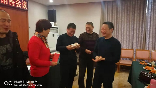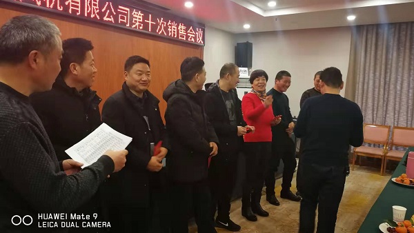 最后,李生华总经理为2019年度优秀销售人员张中临、韩萍、石磊、王建洲、牛学义、张俊杰等同志颁奖,全体参会人员聚餐,希望大家在2020年,取得更好的成绩,�“周口风机”的品牌贡献自己的力量�